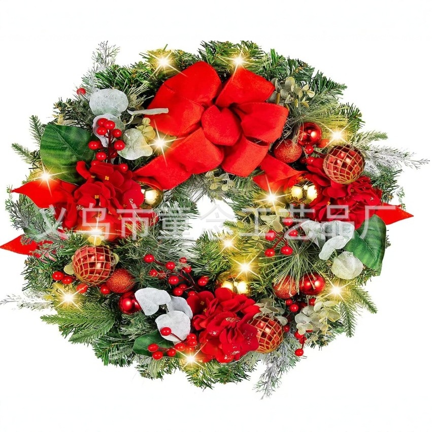 トーチ晟クロスボーダー新品Temuクリスマス50cm花リングベリー蝶結びフロントドアドア掛けホーム装飾品