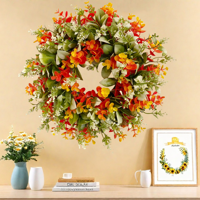 春の夏のユカリの花輪秋の花の輪秋のシミュレーション植物の花輪満天の星の農舎の前のドアの花輪の門