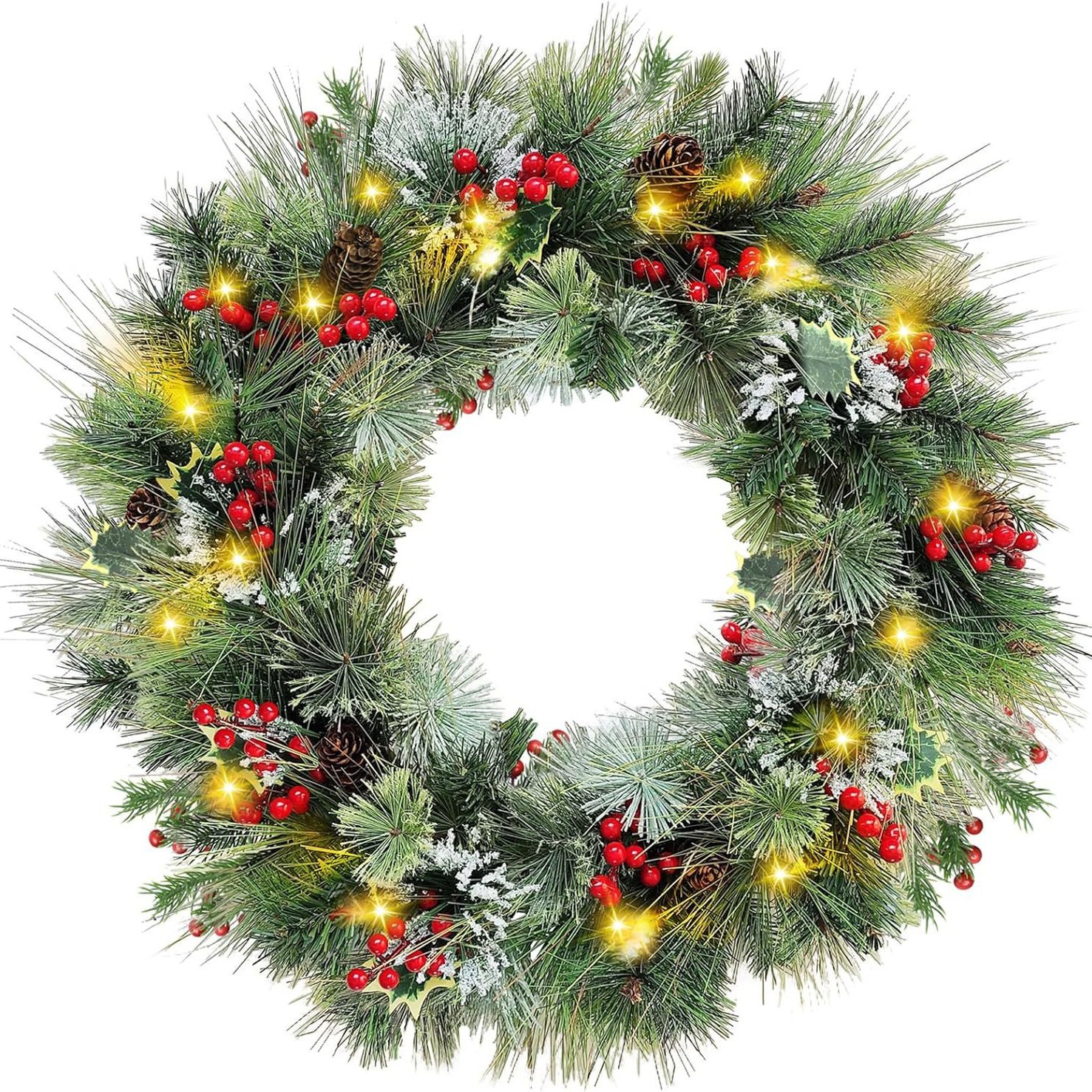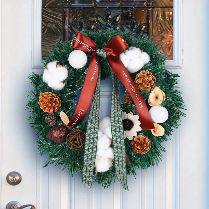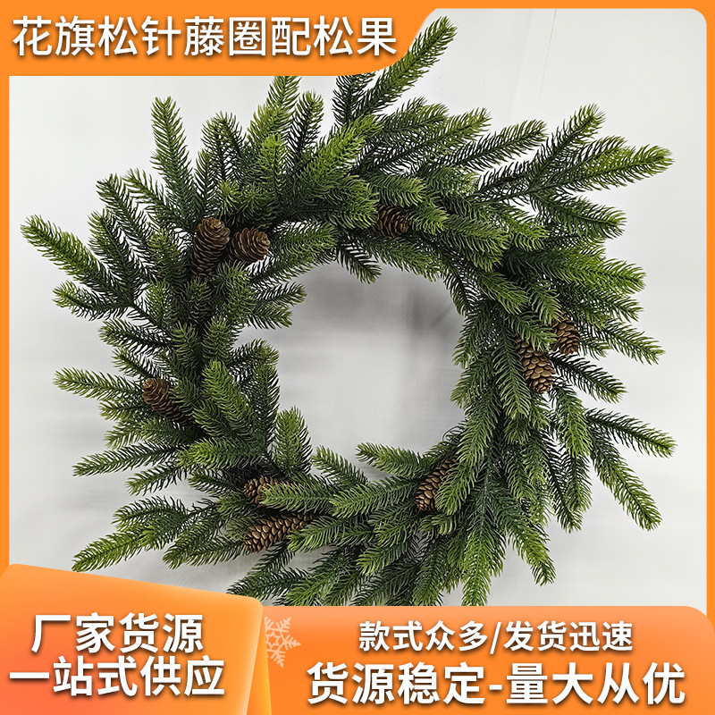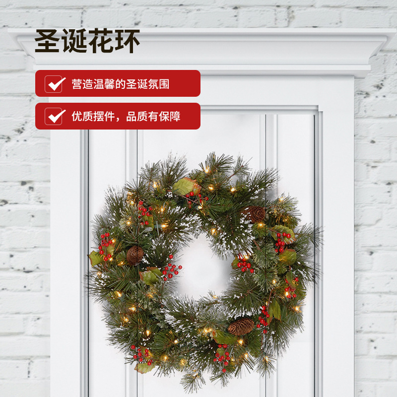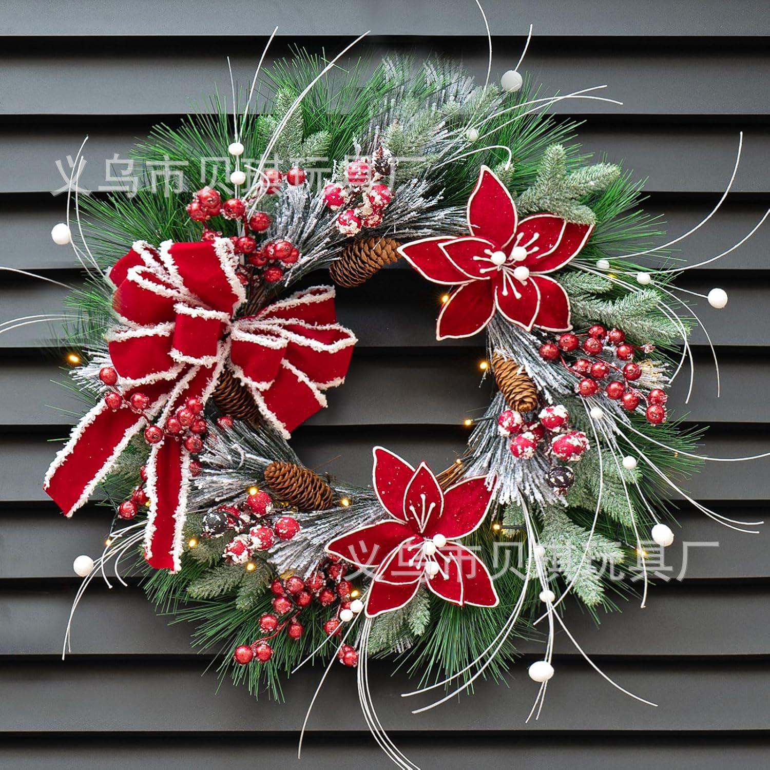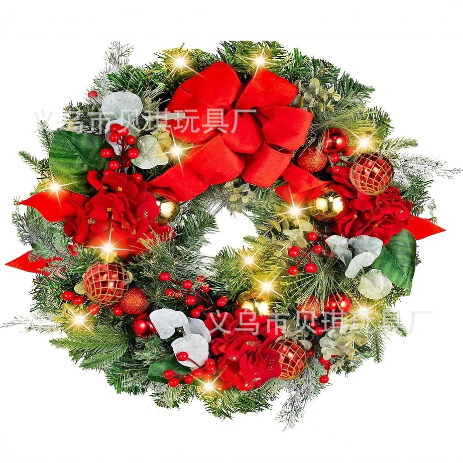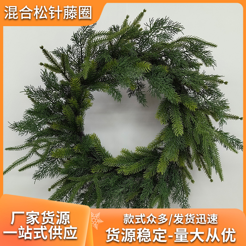 国境を越えて人気のクリスマスリース60cmドア掛け壁掛け装飾混合pe松針シミュレーションクリスマス装飾純粋な手作り
