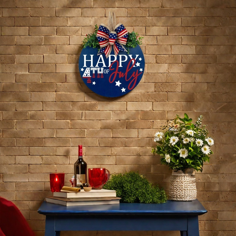 7月4日楽しい木札独立日花輪面白い前門標識吊り下げ札飾り花輪歓迎表札