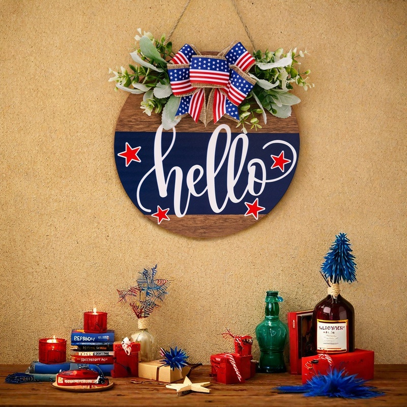 独立日装飾品hello表札花輪掛け飾り前門表札アメリカ祝典壁掛け飾り