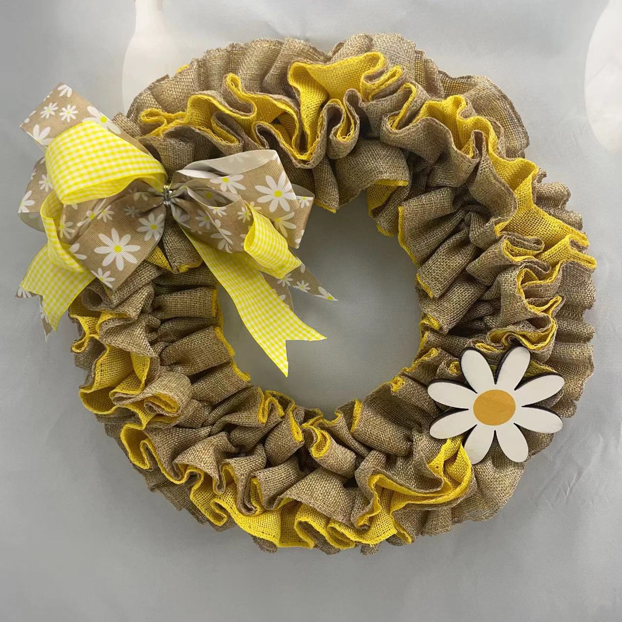 新型クロスボーダーの小さい菊の蝶結びの麻布の輪の花輪の春の夏の扉は祝日を掛けて家の装飾を装います。