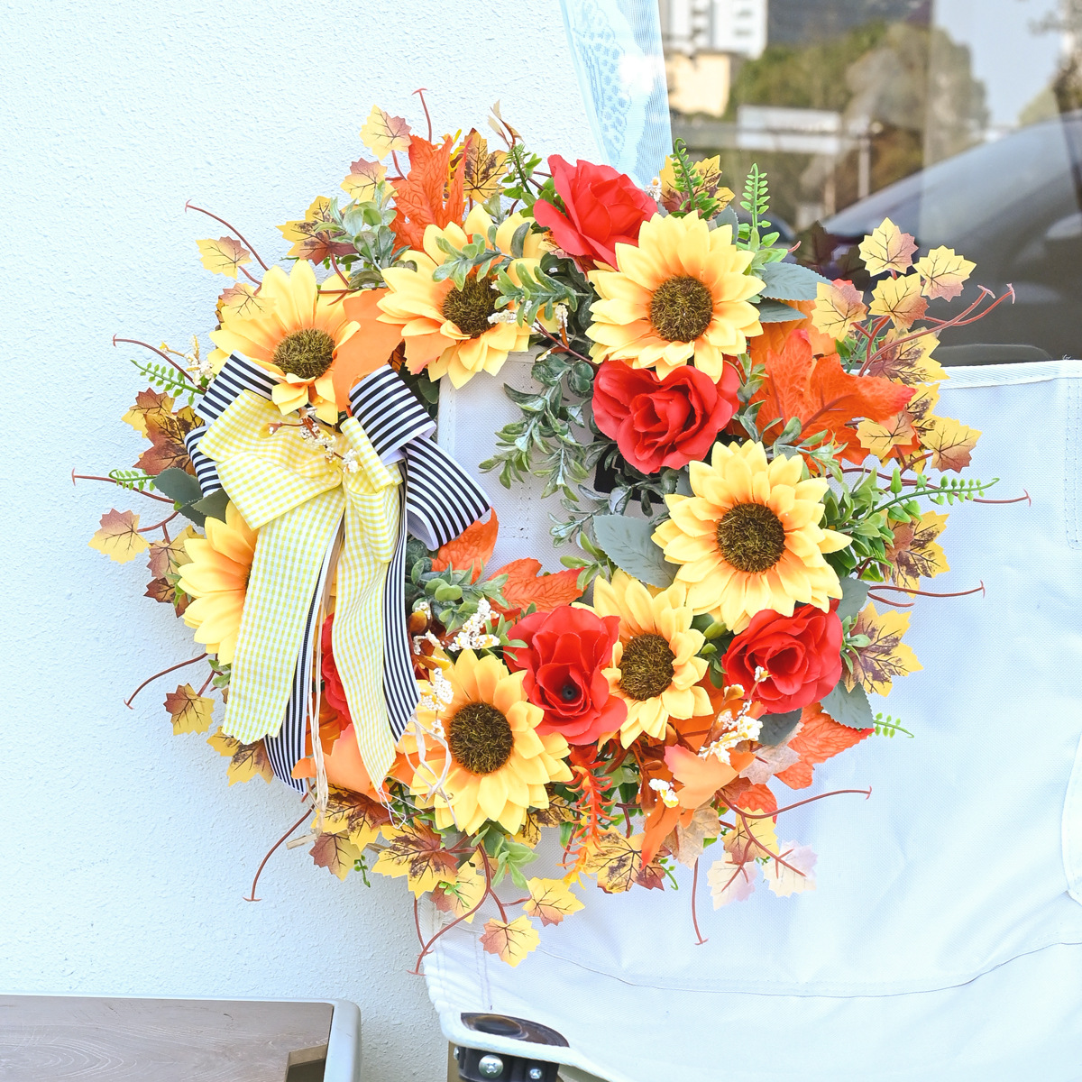 跨境蜜蜂节花环法式乡村丰收节春夏向日葵装饰花圈门饰壁挂仿真花