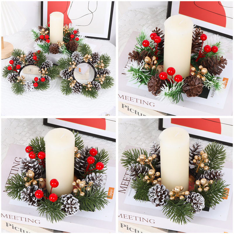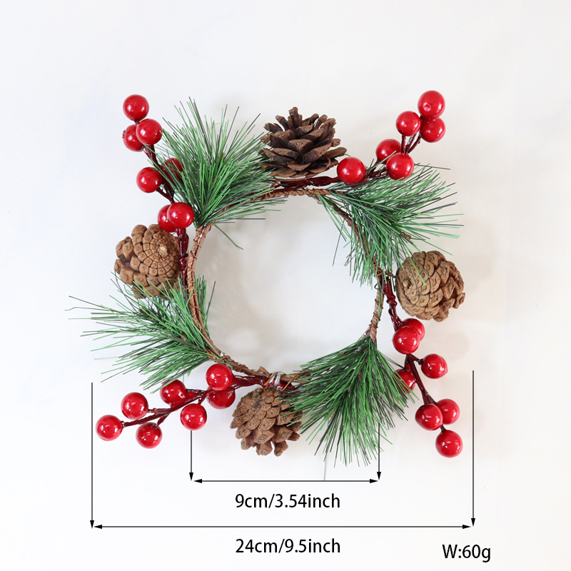 クロスボーダー新製品クリスマス装飾用品松葉赤い果実の香りのキャンドルキャンドルホルダーガーランド装飾サークルハンギングサークル