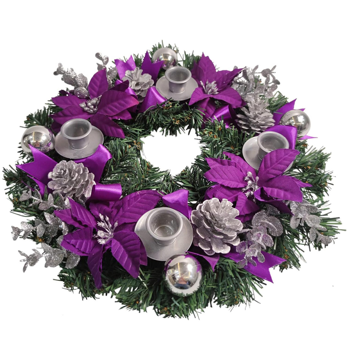 紫色のリボンクリスマス降臨祭り花輪33センチ紫色降臨祭り燭台教会降臨祭り