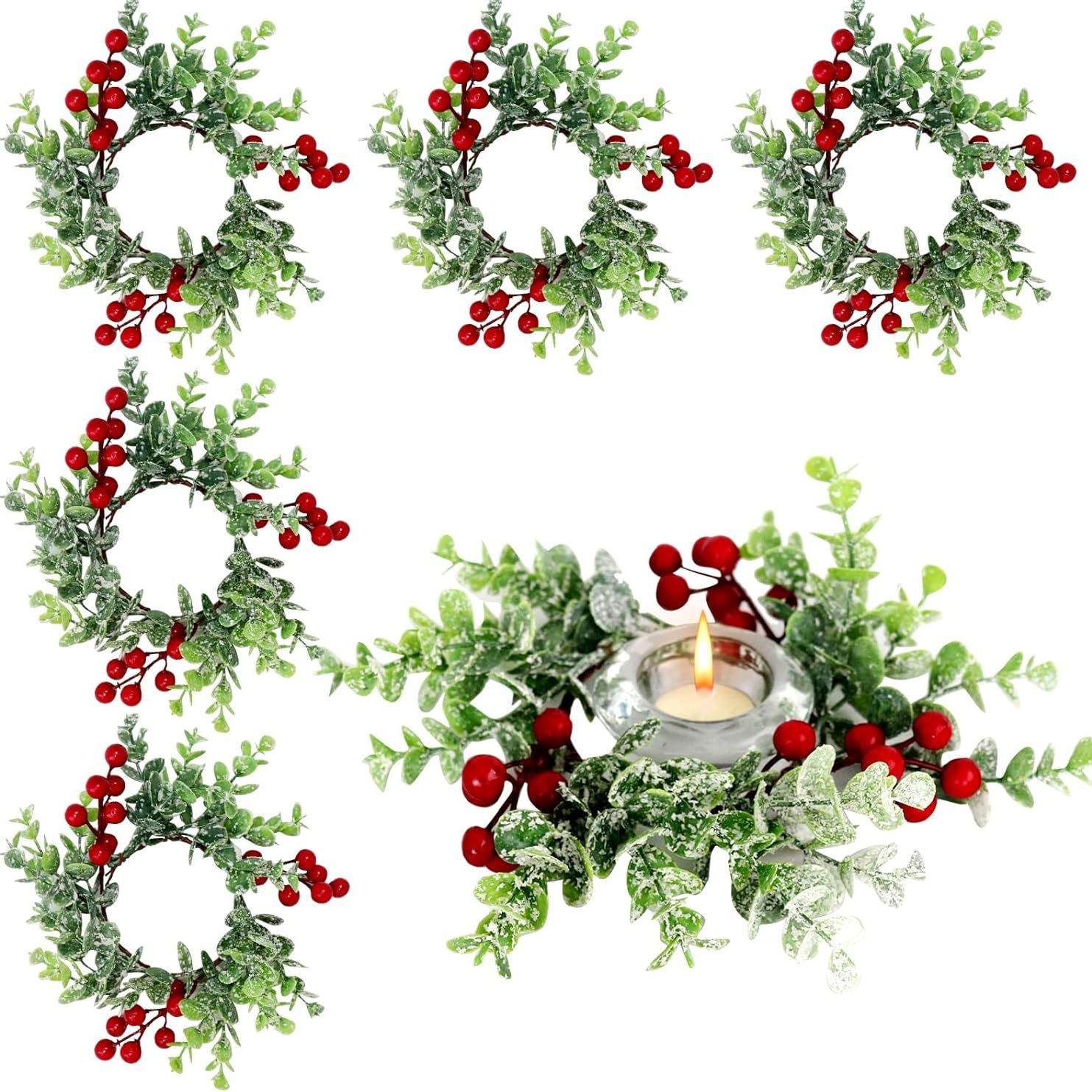 Amazonクロスボーダーベストセラークリスマスホリデーデコレーションキャンドルリングフロストホワイト松葉ガーランドキャンドルホルダーリング工場