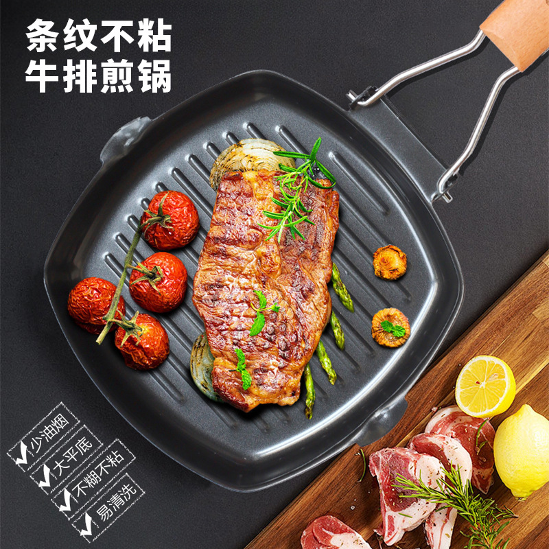多機能タイプの折りたたみ可能な麦飯石ステーキフライパンの鉄製のストライプがついていません。