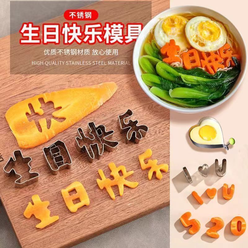 ハッピーバースデー一体型印刷型ニンジンフルーツ子供用デジタル形状カッティング型オムレツ成形リング