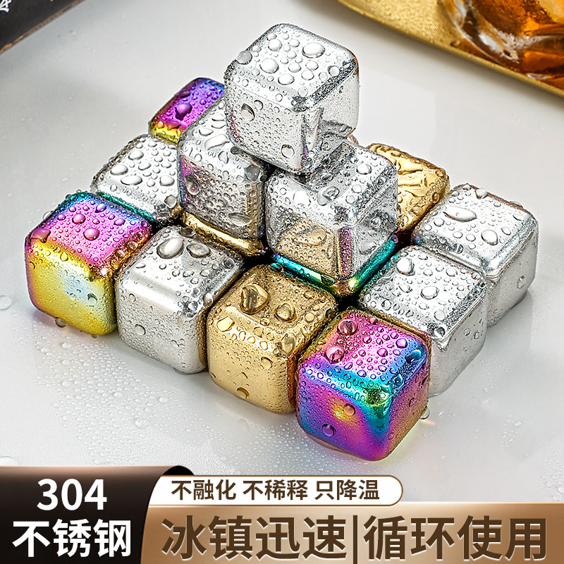 304 ステンレス鋼アイスキューブワインウイスキー急速冷凍ワインセットチタンメッキカラーアイスキューブアイスアーティファクト金属アイスキューブ