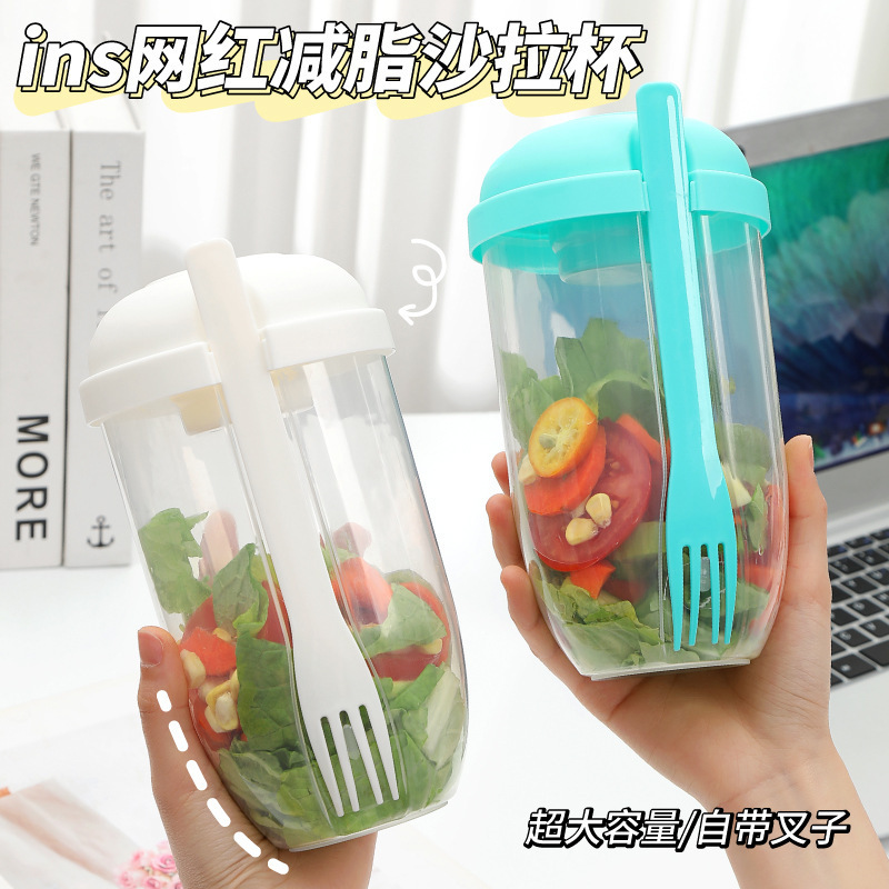 スプーンと蓋付きの国境を越えた朝食用サラダカップ、学生が外出時に果物や野菜を食べたり、軽食や牛乳を飲んだりするのに便利、粉ミルク瓶