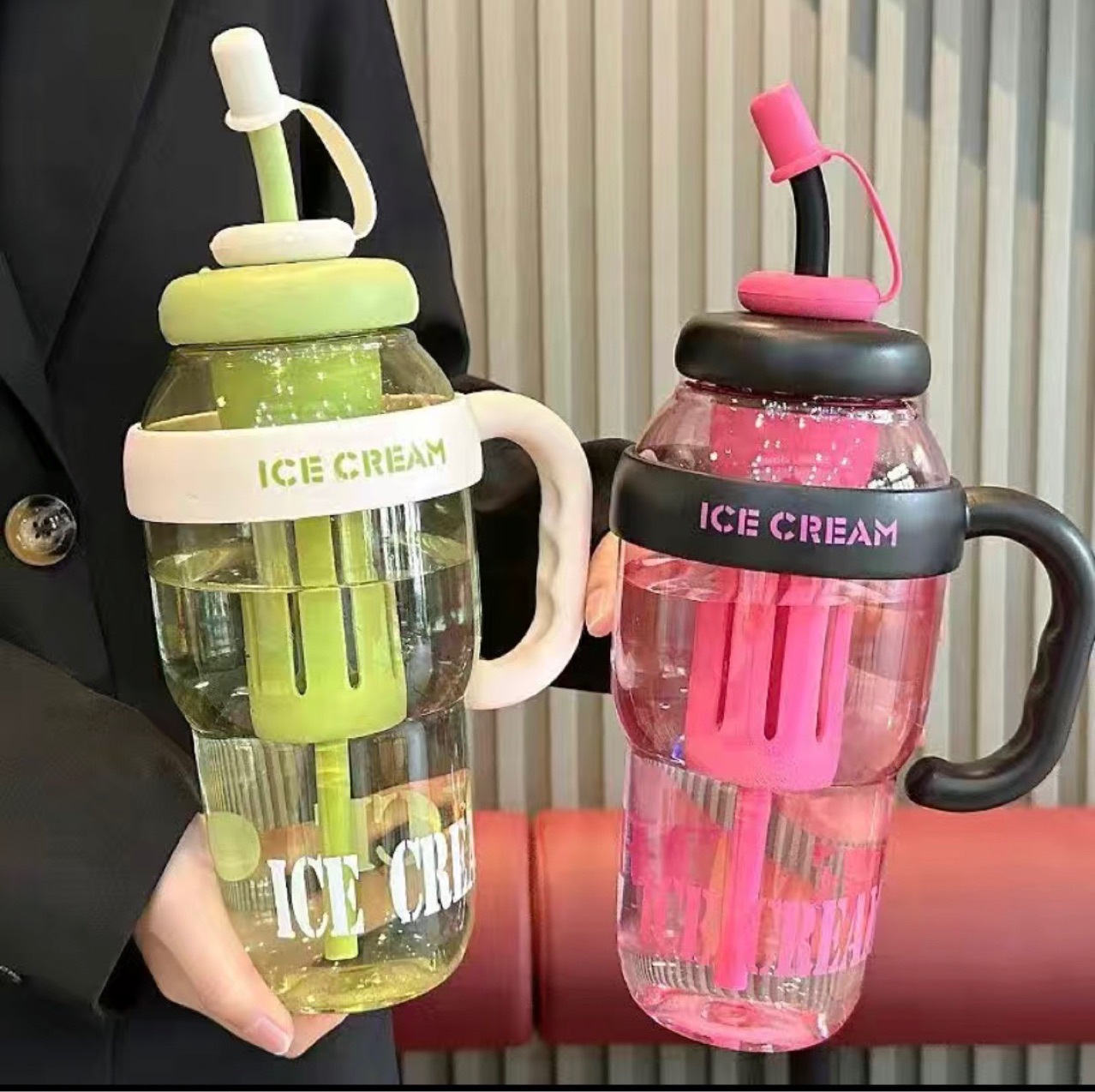 新型ストローカップ高颜値ハンドル付き大容量水レモンカップ女性携帯ストローカップ花茶倉カップ