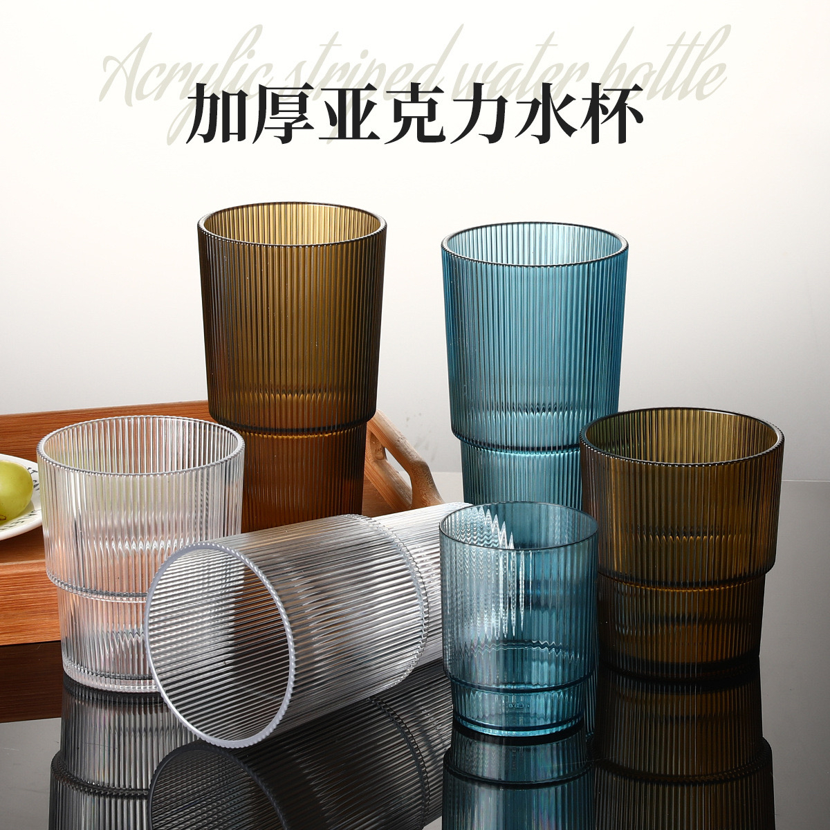 亚克力水杯彩色漱口杯果汁茶杯耐热耐摔 餐厅杯子透明塑料啤酒杯