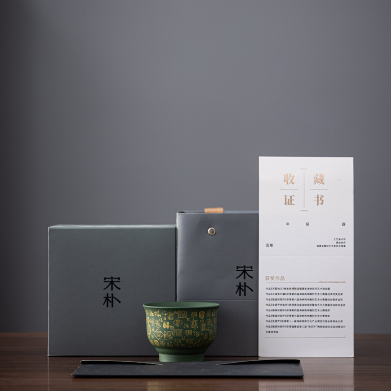 宋朴苏扬烨大师手工紫砂绿泥金色百福杯主人杯品茗杯礼盒装定logo