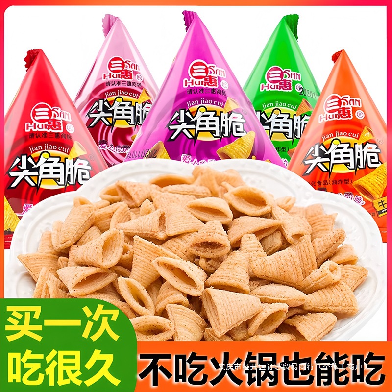 【スーパーや店頭で同じスタイル】三和尖角クリスピーホットプレート3味、ホーンクリスピースナック、クリスピーパフ三角クリスプ