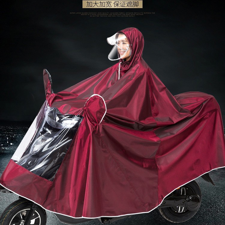 本物の電気自動車防水レインコートオートバイレインポンチョ足をカバー雨保護顔保護ソフト超厚手ワイドダブル