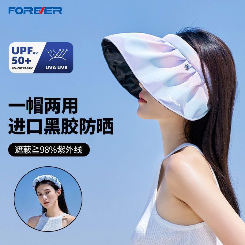 永久的な大きなつばの日よけ帽子、夏の紫外線防止ビニールヘッドバンド、グラデーションカラーの日よけ、顔全体を覆う空のトップサンハット