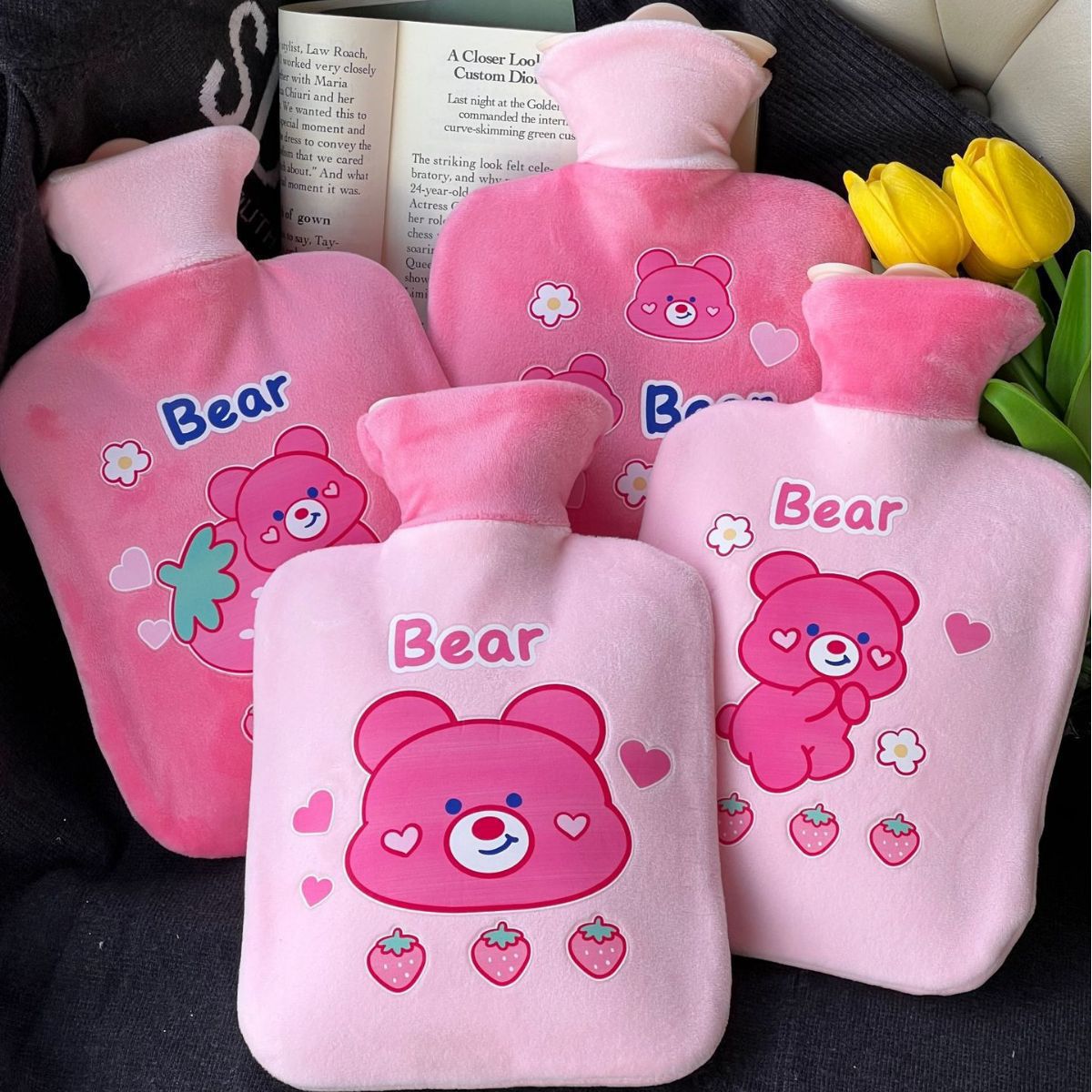 冬のアニメ注水湯たんぽかわいいぬいぐるみいちご熊学生児童暖かい湯たんぽ工場卸売り