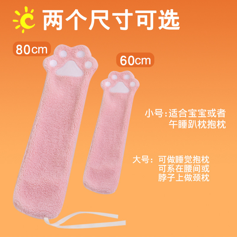 アニメのぬいぐるみの爪の暖かい手は枕を抱いて手を入れてかわいい手で冬の女の子を覆って寝ます。
