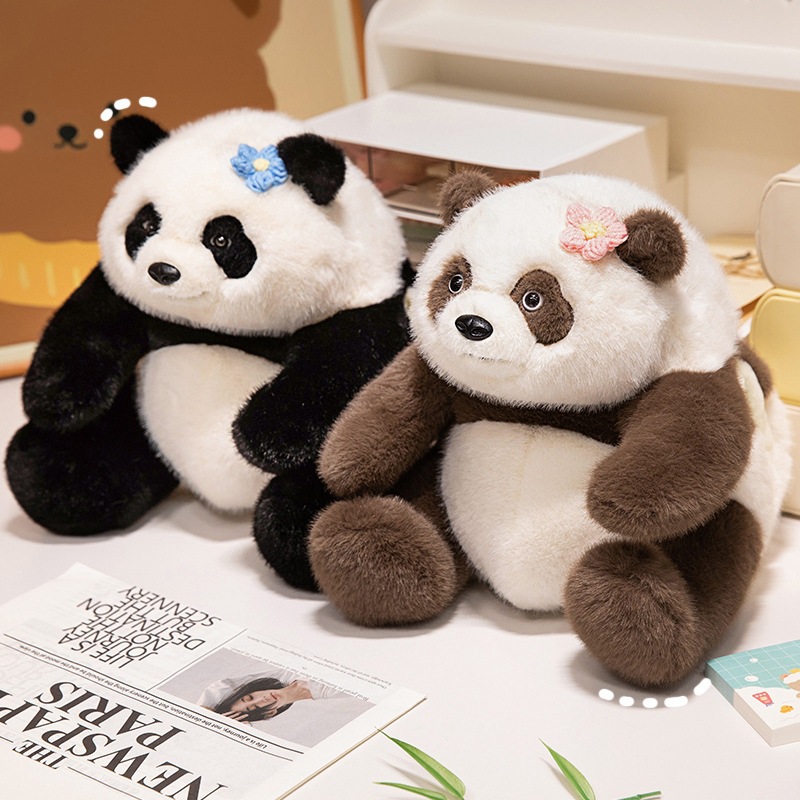 かわいい花の七仔パンダの暖かい手の湯たんぽに水を入れて、暖かい手でアニメのぬいぐるみを覆います。