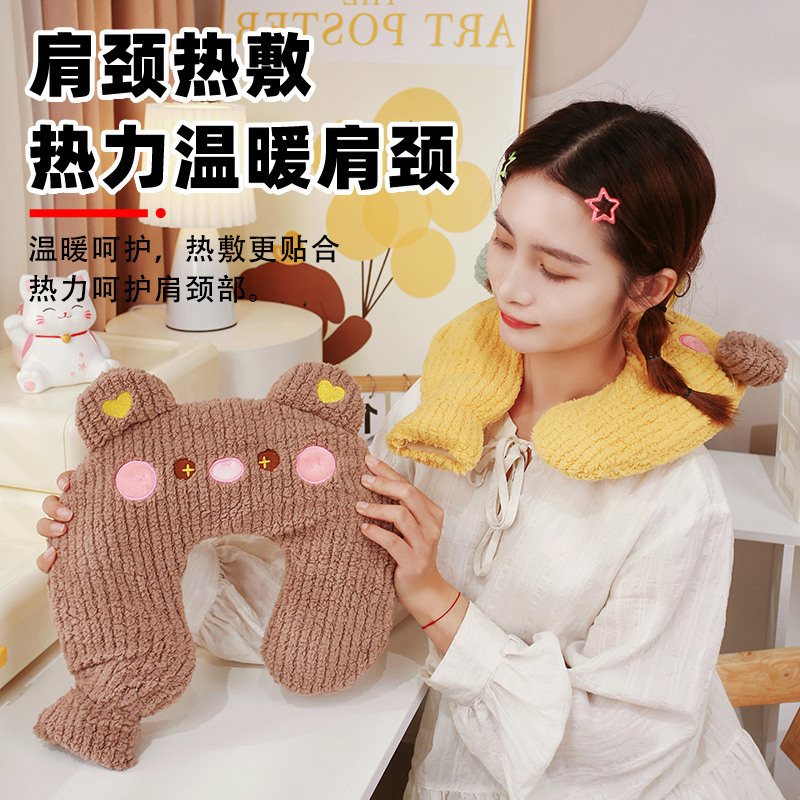 かわいいu型湯たんぽ頚椎専用熱敷首注水湯たんぽ冬暖かい肩首灌水u型枕頭