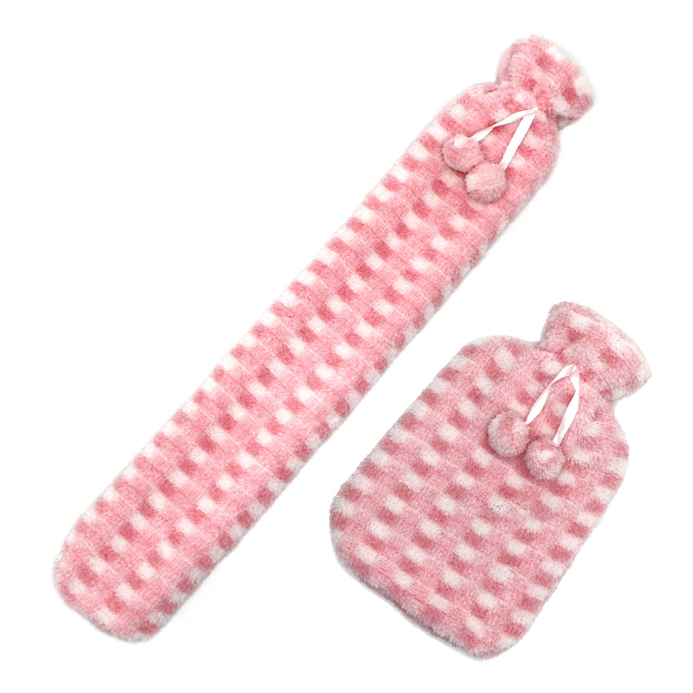メーカー直販ピンクの小さなボール付きのぬいぐるみカバーの長いゴム湯たんぽ