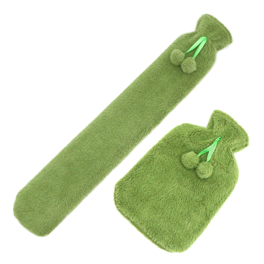メーカー直売の緑の小さいボールの装飾のぬいぐるみのカバーの長いゴムの湯たんぽの暖かい腹の長い湯たんぽ