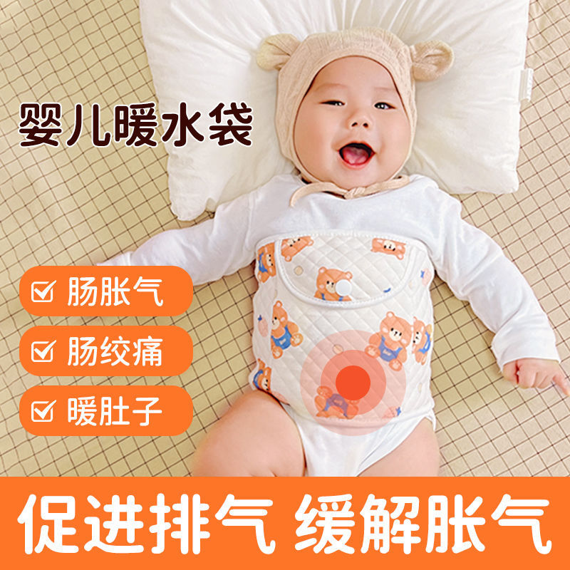 新生児の赤ちゃんはお腹を温めて湯たんぽを温めます。