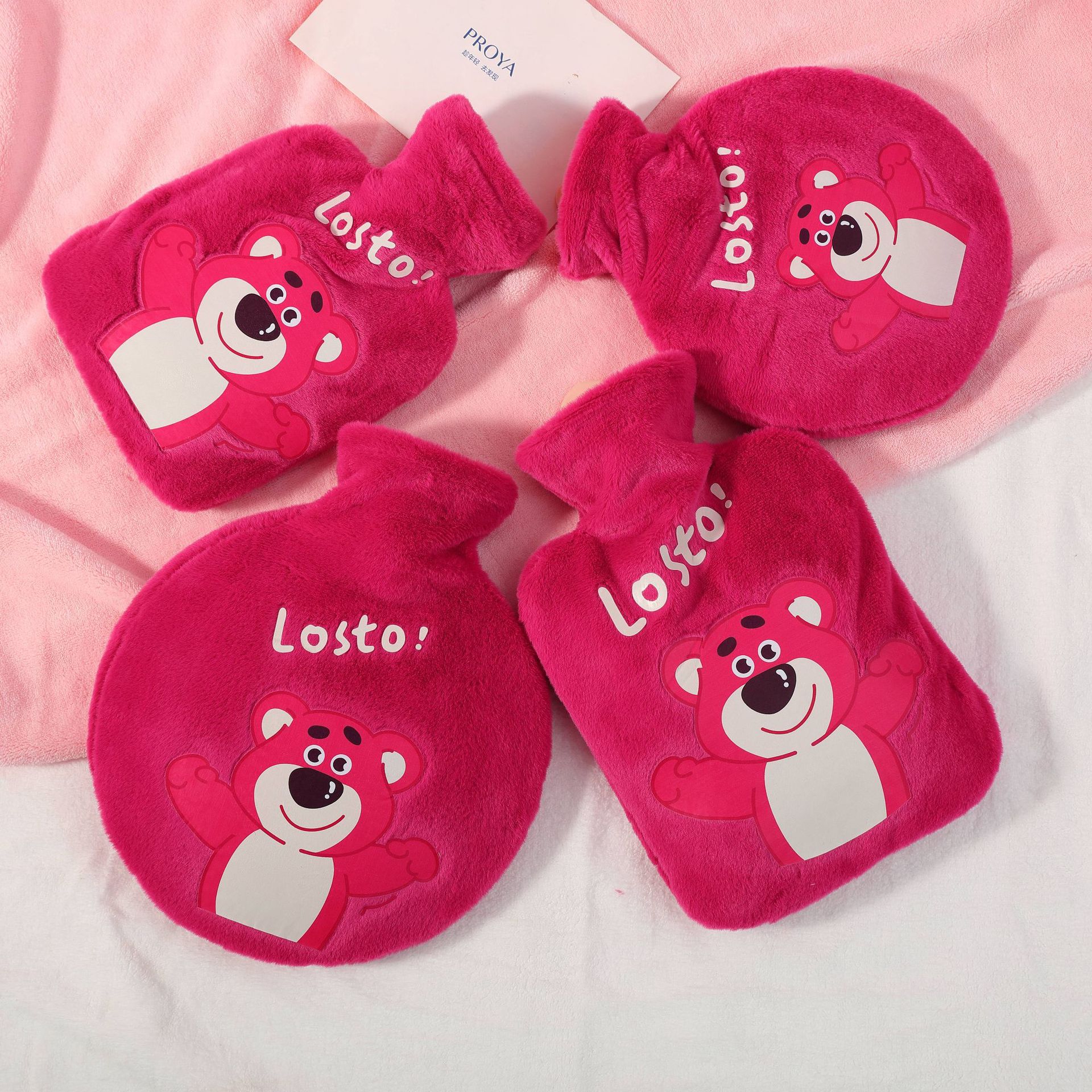 新しいぬいぐるみいちご熊湯たんぽ円形注水湯たんぽ学生がお腹をかぶるぬいぐるみ1200ml
