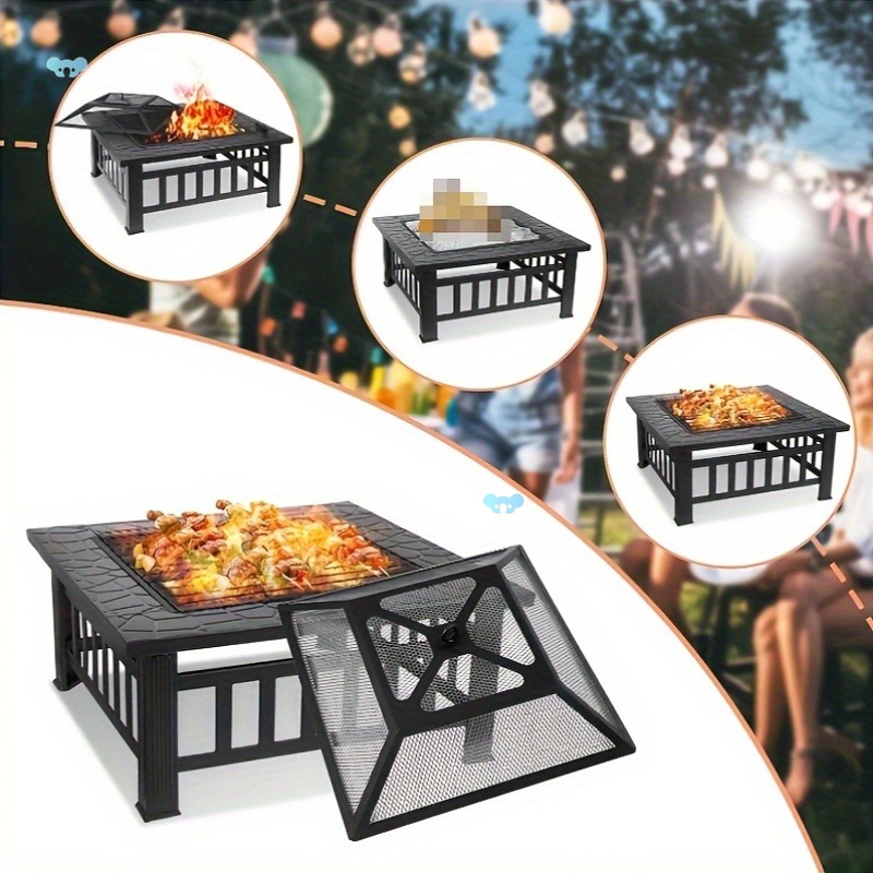 32インチ スクエア 鋳鉄 ファイヤーピット ブラック ヘビーデューティー/アウトドア クロスボーダー