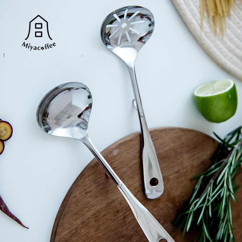 宮崎製作所日本輸入304ステンレススプーン漏れスプーンセット厚い鍋スプーンは吊り下げて丈夫です。