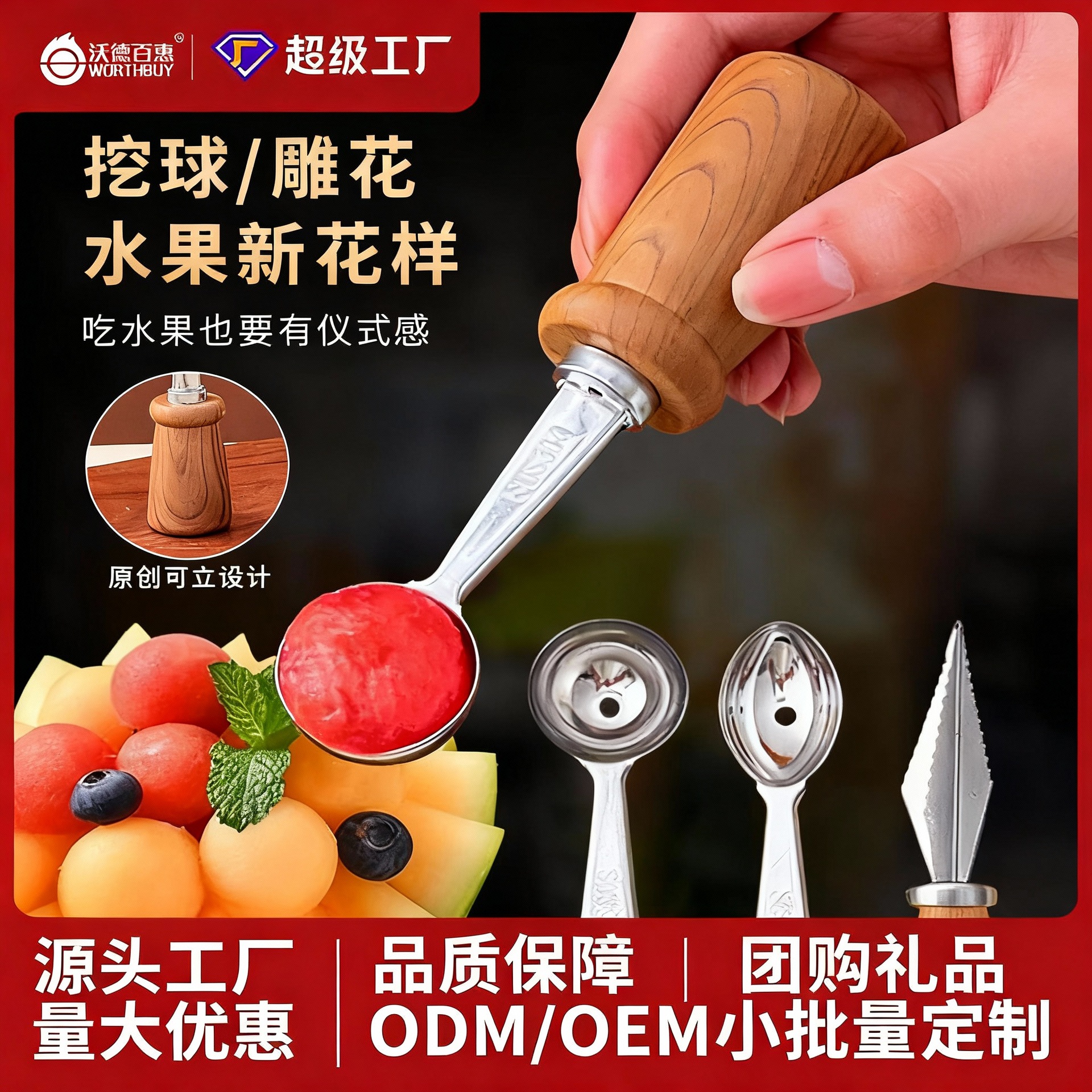 Wow カスタマイズされたフルーツボールスクープ ツーインワン双頭フルーツプラッター肉スクープ クリエイティブ波形彫刻ナイフセット