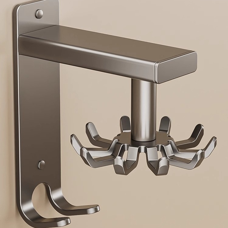 キッチン回転フック壁掛け収納ラックさまざまなスパチュラ、スプーン、シャベルを収納できるパンチフリーシェルフなし