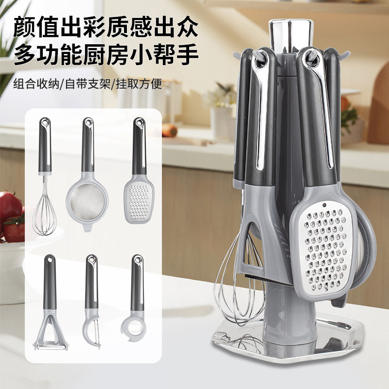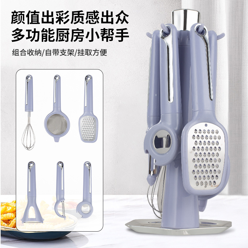 キッチンヘルパーセット家庭用多機能ガジェット収納ラックおろし金エッグビーター栓抜きフィルター