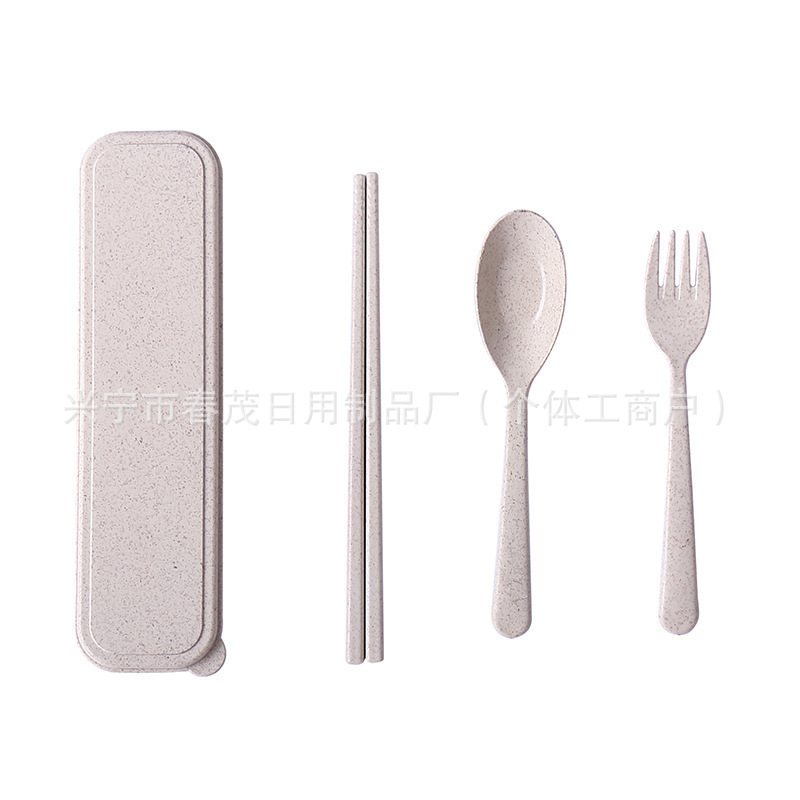 小麦わら食器 3 点セット子供用フォーク、スプーン、箸食器セット旅行ピクニックポータブル食器収納