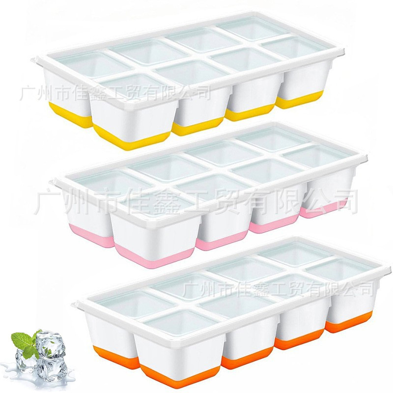 クロスボーダー 8 グリッド蓋付き製氷皿家庭用正方形アイスキューブアイスボール型オレンジピンクイエロー製氷ボックスアーティファクト