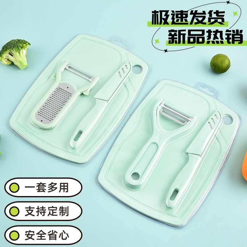 キッチンガジェットセットメロンおろし金フルーツナイフまな板キッチンはさみ栓抜き屋外ポータブルブリスター3点セット