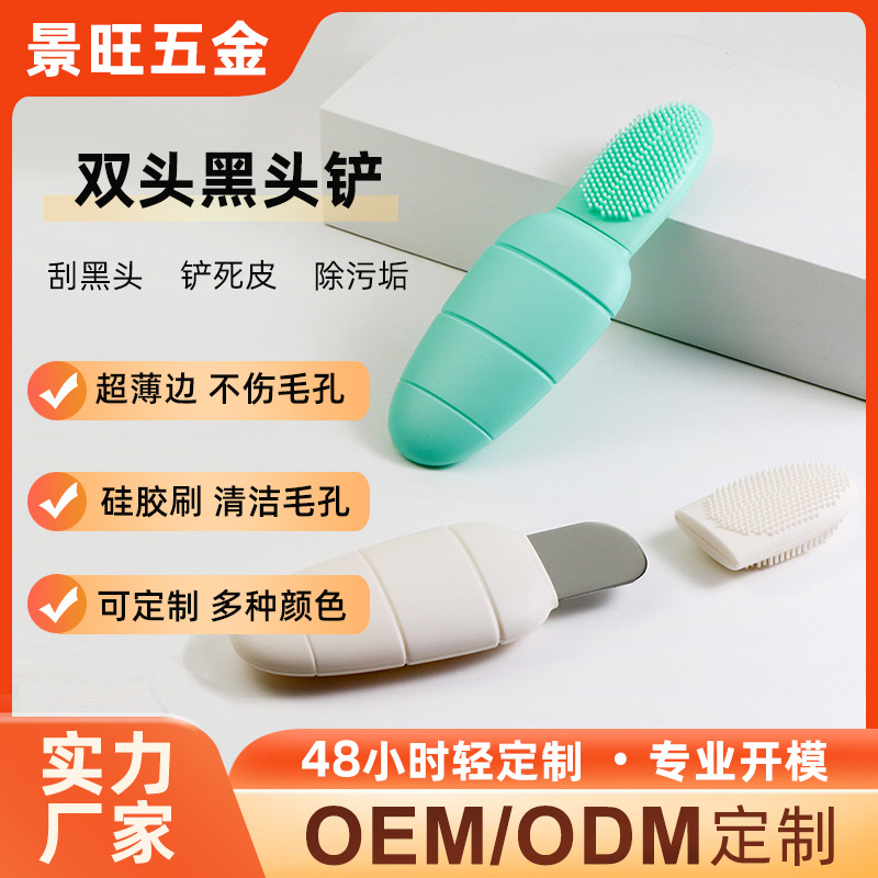 にきびスクレーパー、にきび除去ツール、手動にきび除去、顔の毛穴洗浄加工品、双頭洗顔シリコンブラシ
