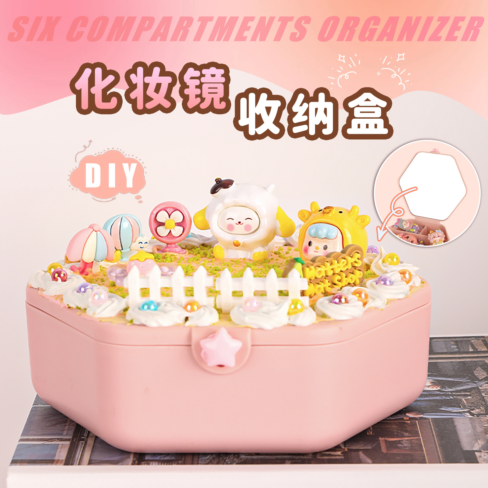 学生六稜手作り贅沢diyクリームネックレスアクセサリー収納ケースデスクトップ化粧鏡整理ケースプレゼント
