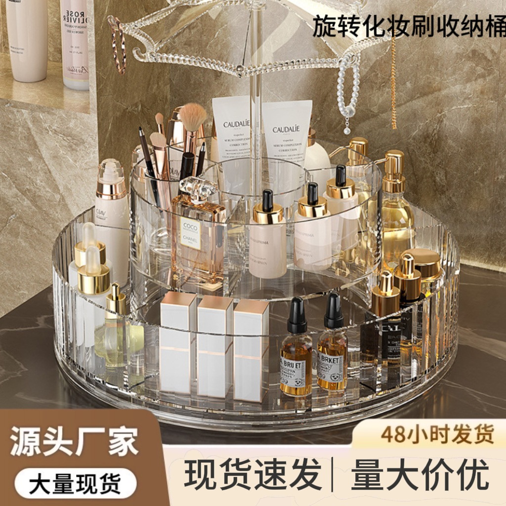 ライト高級ドレッシングテーブル化粧品収納ボックス家庭用透明回転デスクトップ眉毛ペンシルスキンケア製品収納ラック大容量
