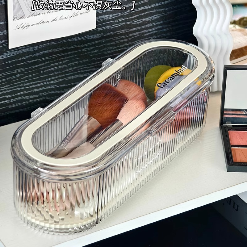 プレス化粧ブラシ収納筒防塵ドレッサーデスクトップ化粧品収納ボックスアイブロウブラシバケツ自動リフト