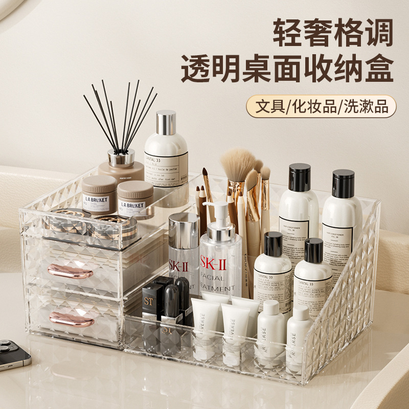 化粧品収納ボックスデスクトップ防塵高級感化粧台スキンケア口紅アクリル大容量棚