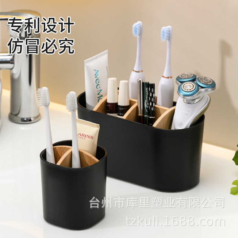 アマゾンクロスボーダー特許設計デスクトップ収納ボックス浴室竹木分格歯ブラシ歯磨き粉収納ボックス