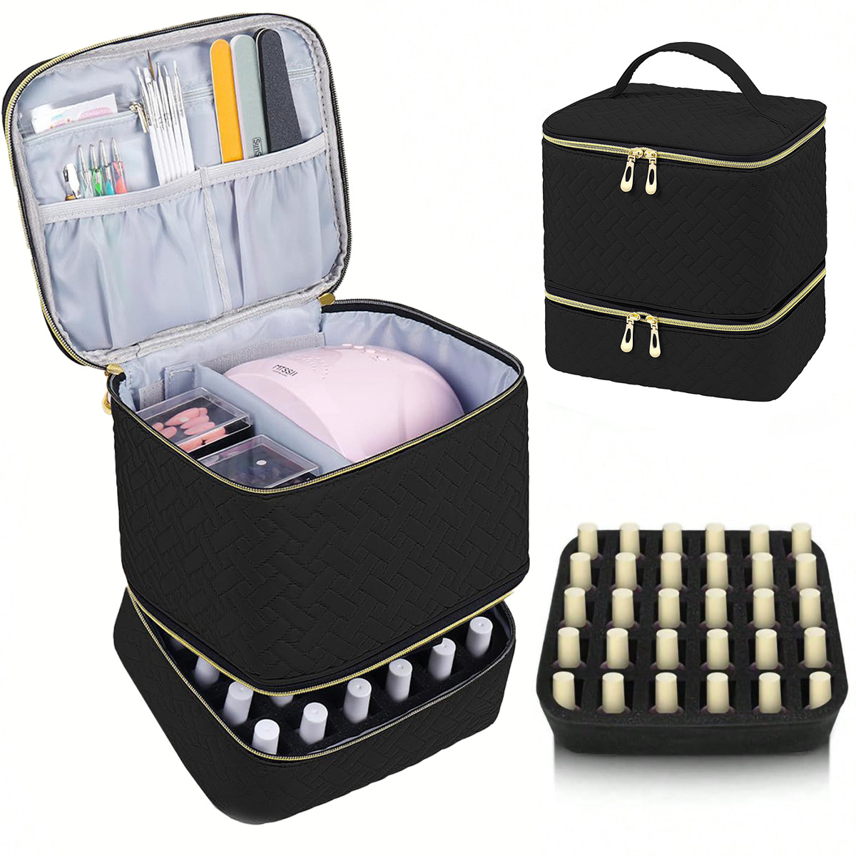 クロスボーダー大容量高级感ポーチPUポータブル二重マニキュア収纳バッグネイルハンドバッグ収纳バッグ
