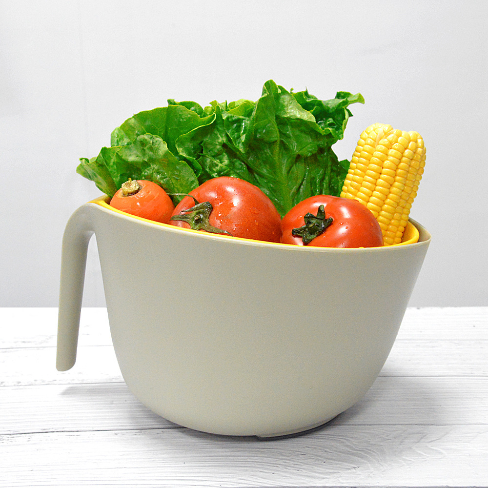 大型二層野菜と果物の水切りバスケット、ハンドル付きプラスチック野菜洗い桶、キッチンフルーツバスケット、サラダミキシングボウル