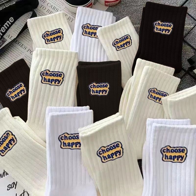 靴下白黒男女白色中筒四季防臭純色吸汗スポーツ靴下通気潮流