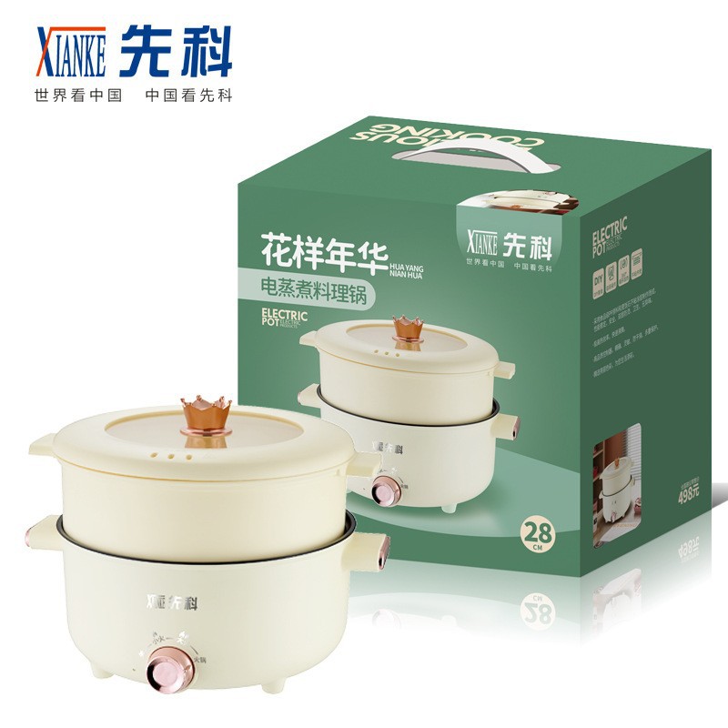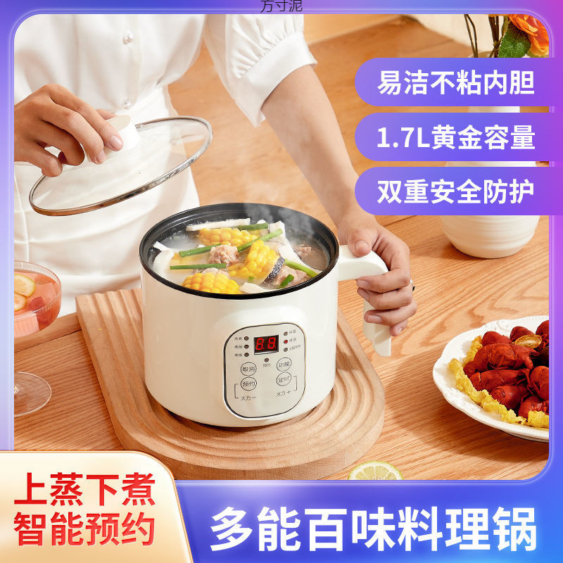 現代電気煮鍋ミニ学生寮煮麺小電気鍋多機能家庭用蒸し器付き一体式電熱鍋