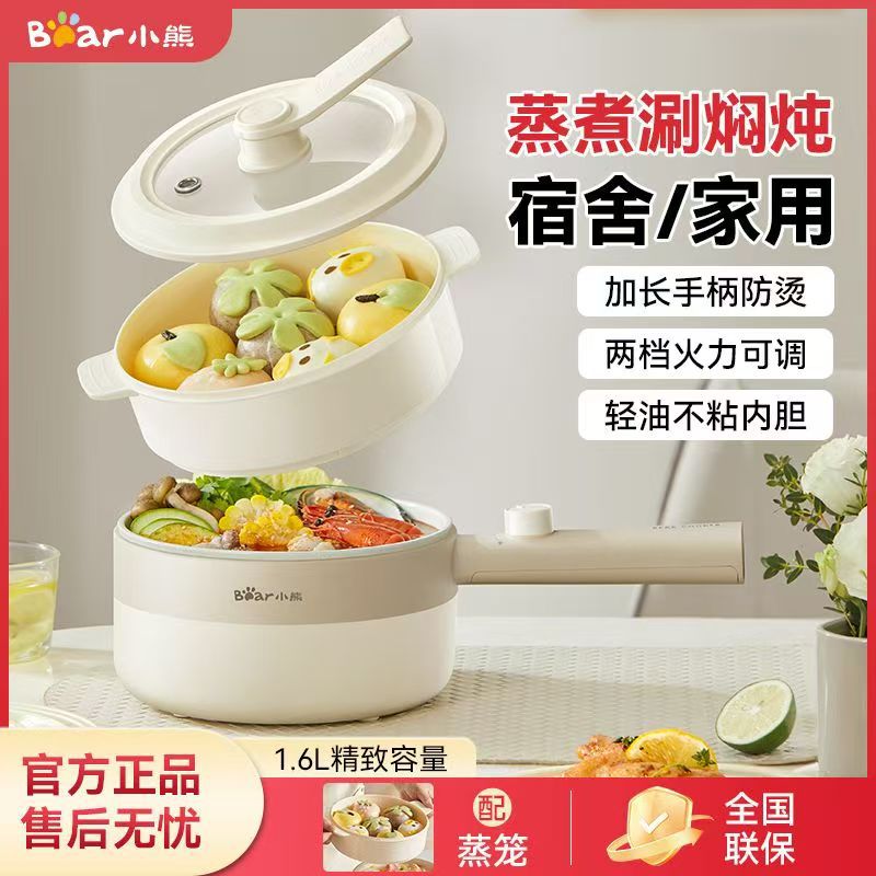 熊電気煮鍋家庭用寮学生鍋一人でカップラーメン鍋小電気鍋多機能蒸煮一体型鍋