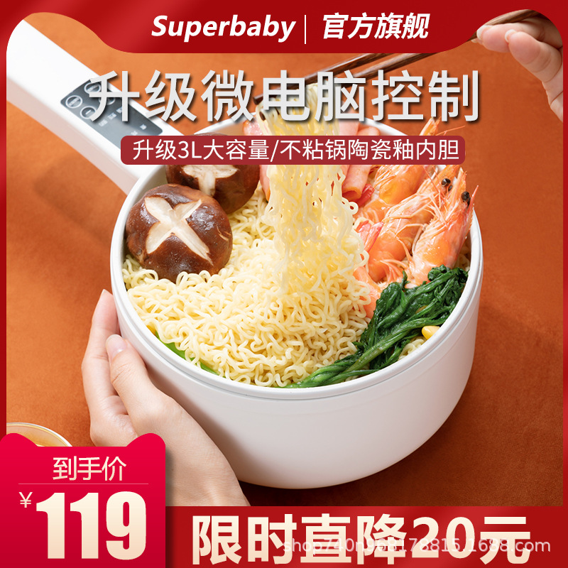 起爆電気煮鍋家庭用寮学生多機能軽食料理小電気鍋煮麺電気鍋電気炒め鍋
