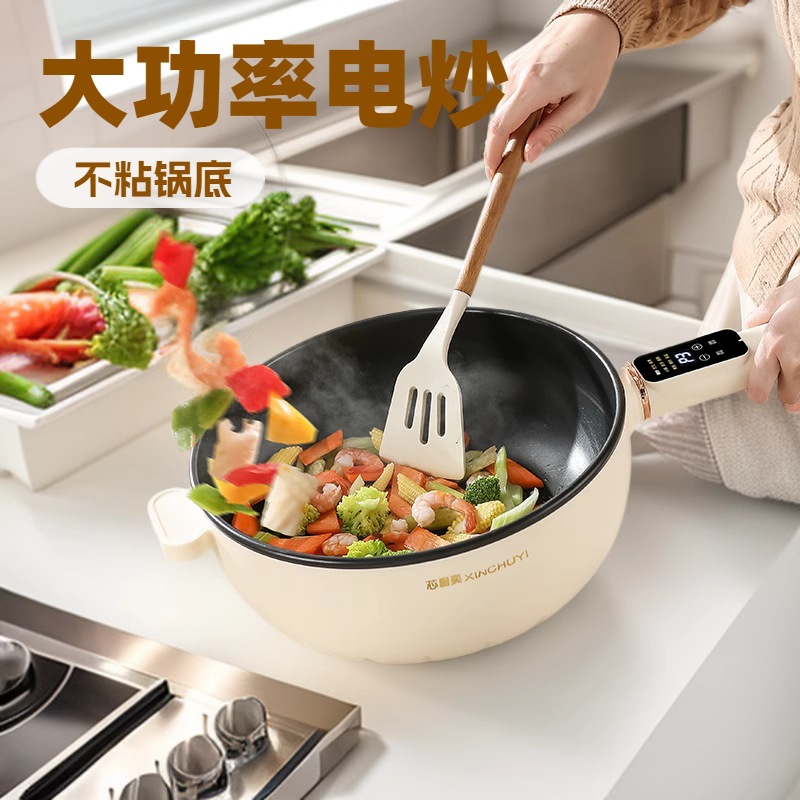 多機能電気煮鍋学生寮鍋電気鍋家庭用電気鍋電気炒め鍋電気炒め鍋無粘着鍋知能