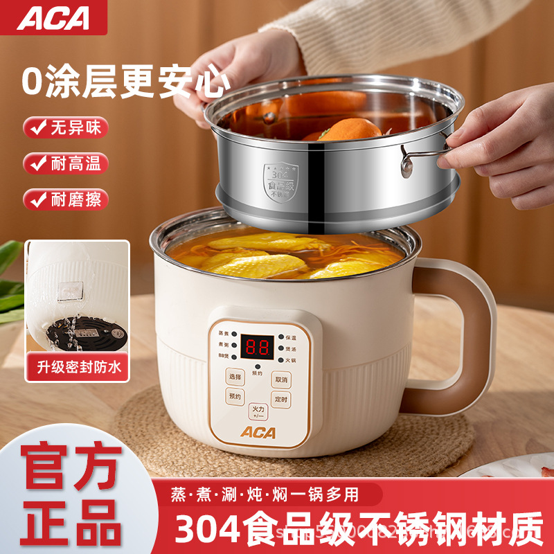 ACA電気煮鍋304内胆多機能寮学生鍋家庭用小型電気鍋ミニ鍋小電気鍋